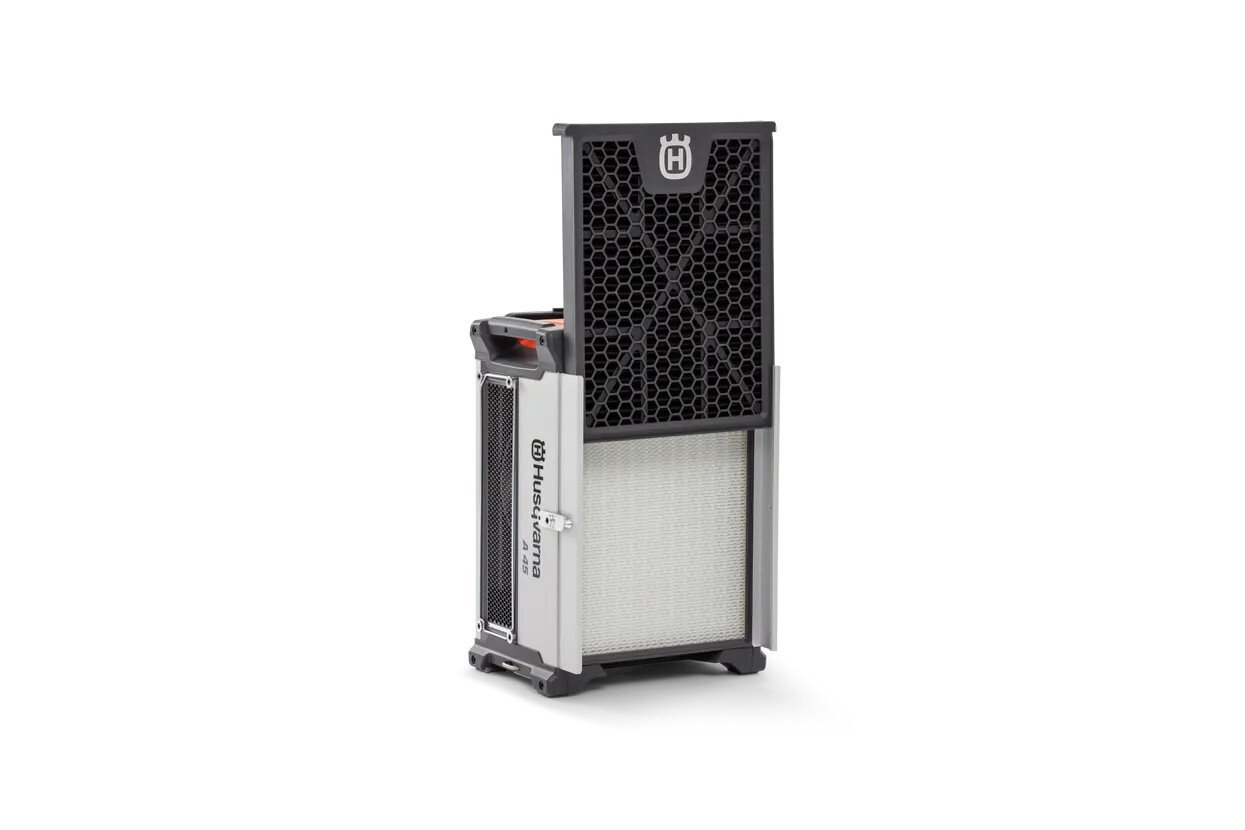 Čistič vzduchu HUSQVARNA A 45 je výkonný profesionální přístroj určený pro efektivní čištění vzduchu při náročných stavebních, sanačních a renovačních pracích. Slouží k odsávání a filtraci jemného i velmi jemného prachu vznikajícího při broušení, frézování nebo řezání betonu a dalších stavebních materiálů. Díky vysoké kapacitě filtrace je vhodný i pro větší prostory a dlouhodobé nasazení. Konstrukce stroje klade důraz na spolehlivost, snadnou manipulaci a bezpečný provoz v každodenní praxi.