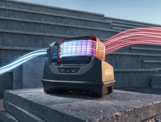 Použití: rychlé nabíjení akumulátorů Husqvarna PACE, profesionální stavební a průmyslové provozy, servisní a nabíjecí zázemí, aplikace s vysokými nároky na výkon, kontinuitu práce a minimální prostoje.